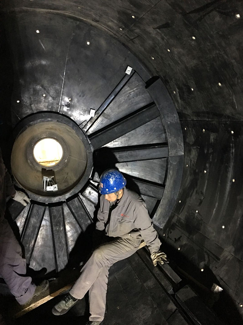 火電廠(chǎng)球磨機(jī)橡膠襯板施工現(xiàn)場(chǎng)