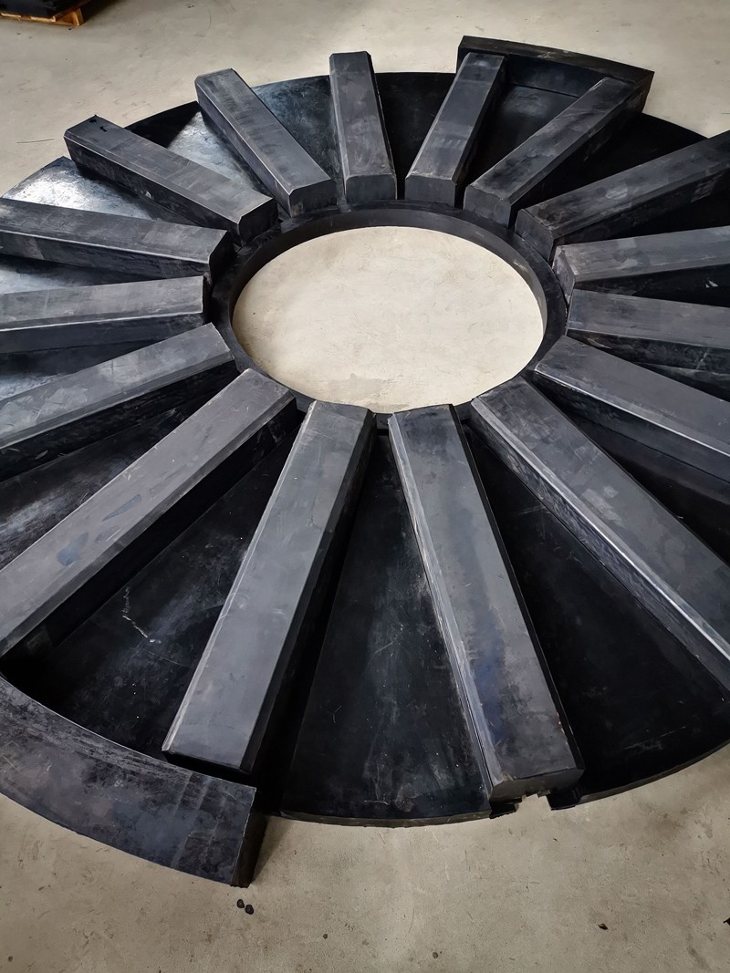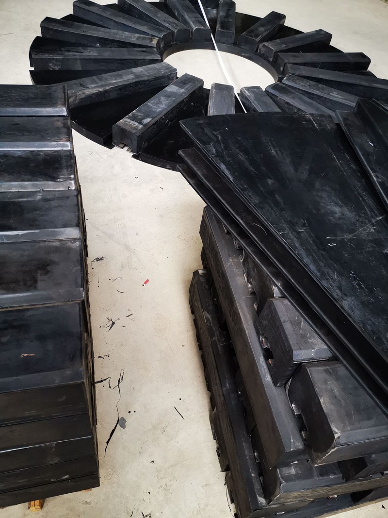 橡膠襯板重量輕,比高錳鋼襯板輕50-85%。一塊高錳鋼襯板重量一般約為50公斤,最重達(dá)120公斤,而單塊橡膠襯板僅有15-20公斤,減輕了檢修襯板的勞動(dòng)強(qiáng)度、避免了裝卸襯板的危險(xiǎn)事故,深受工人群眾歡迎。另外,橡膠是彈性體。磨機(jī)橡膠格子板的蓖孔基本不堵塞,無(wú)需停磨進(jìn)行清理。橡膠襯板磨機(jī)的筒體又不漏漿,無(wú)需停磨檢查修理,因而減少停磨時(shí)間,提高磨機(jī)能力。